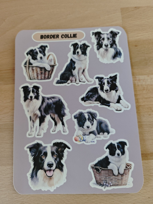 Ajoutez une note de tendresse canine à vos carnets, ordinateurs portables, journaux ou créations DIY avec cette planche de stickers Border Collie 🐾.