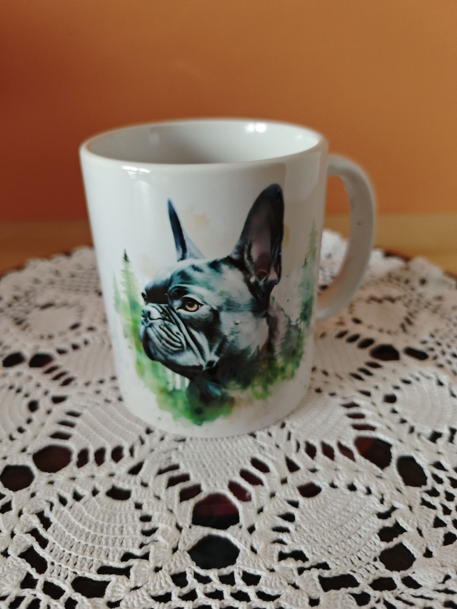 Prenez votre petit déjeuner en bonne compagnie grâce à ce mug en céramique illustré d’un adorable Bouledogue français.