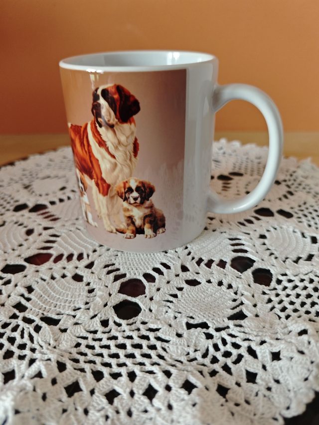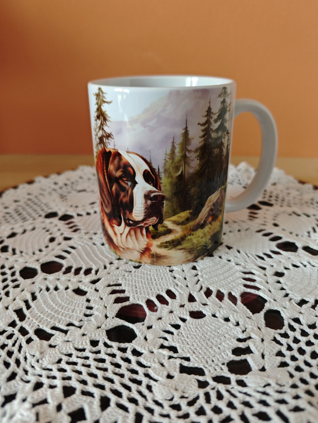Prenez votre petit déjeuner en bonne compagnie grâce à ce mug en céramique illustré d’un adorable Saint-Bernard.
