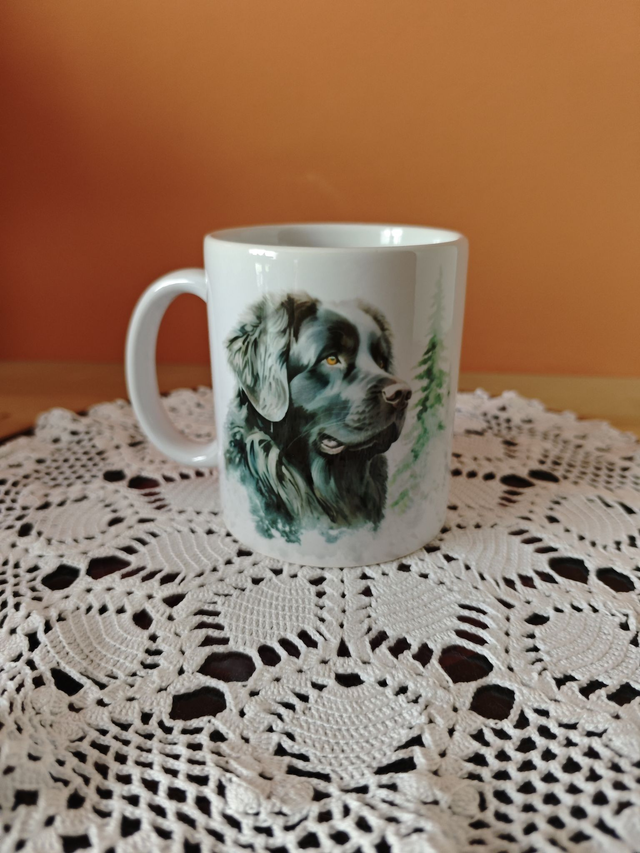 Prenez votre petit déjeuner en bonne compagnie grâce à ce mug en céramique illustré d’un adorable Terre Neuve.