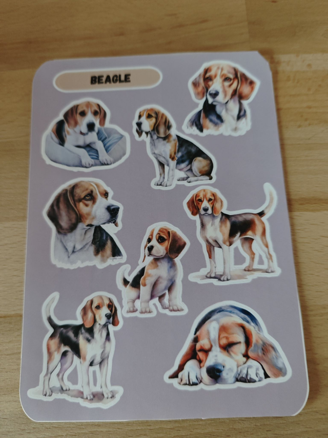 Ajoutez une note de tendresse canine à vos carnets, ordinateurs portables, journaux ou créations DIY avec cette planche de stickers Beagle 🐾.
