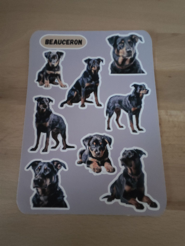 Ajoutez une note de tendresse canine à vos carnets, ordinateurs portables, journaux ou créations DIY avec cette planche de stickers Beauceron 🐾.