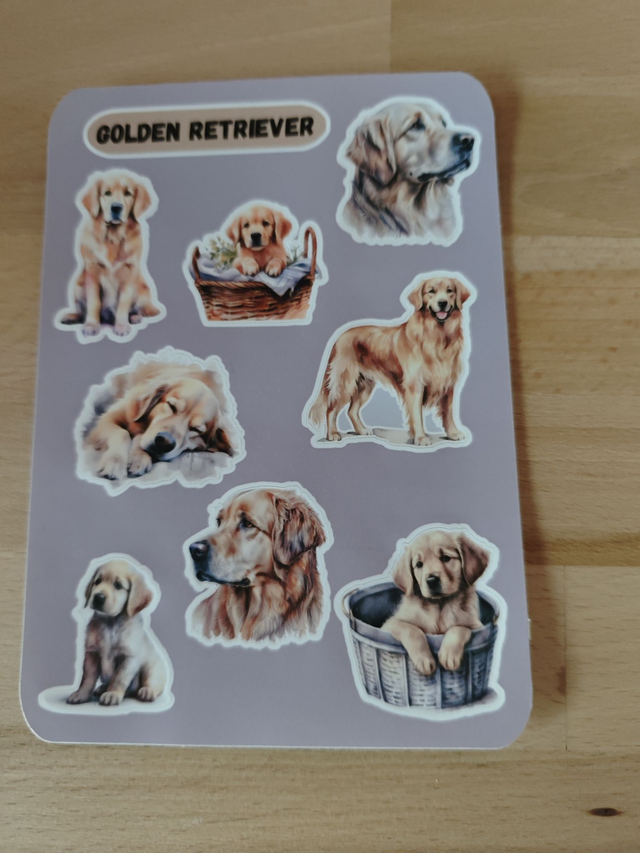 Ajoutez une note de tendresse canine à vos carnets, ordinateurs portables, journaux ou créations DIY avec cette planche de stickers Golden Retriever 🐾.
