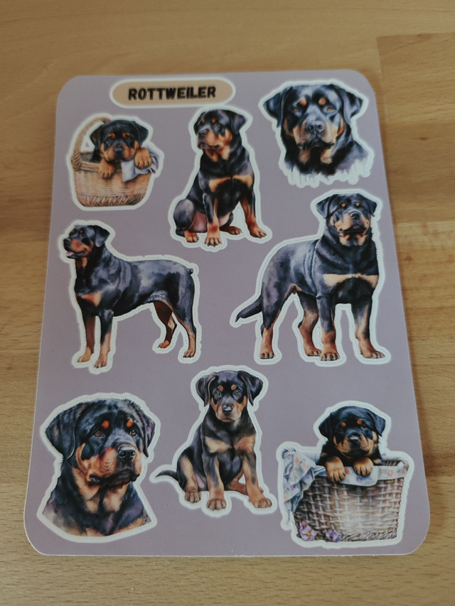 Ajoutez une note de tendresse canine à vos carnets, ordinateurs portables, journaux ou créations DIY avec cette planche de stickers Rottweiler 🐾.
