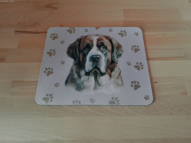 Apportez une touche canine à votre bureau avec ce tapis de souris illustré d’un majestueux Saint-Bernard. Pratique et esthétique, il allie confort et stabilité pour un usage quotidien.